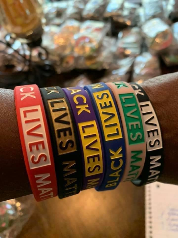 Silicone wrist bracelet with molded words “BLACK LIVES MATTER”